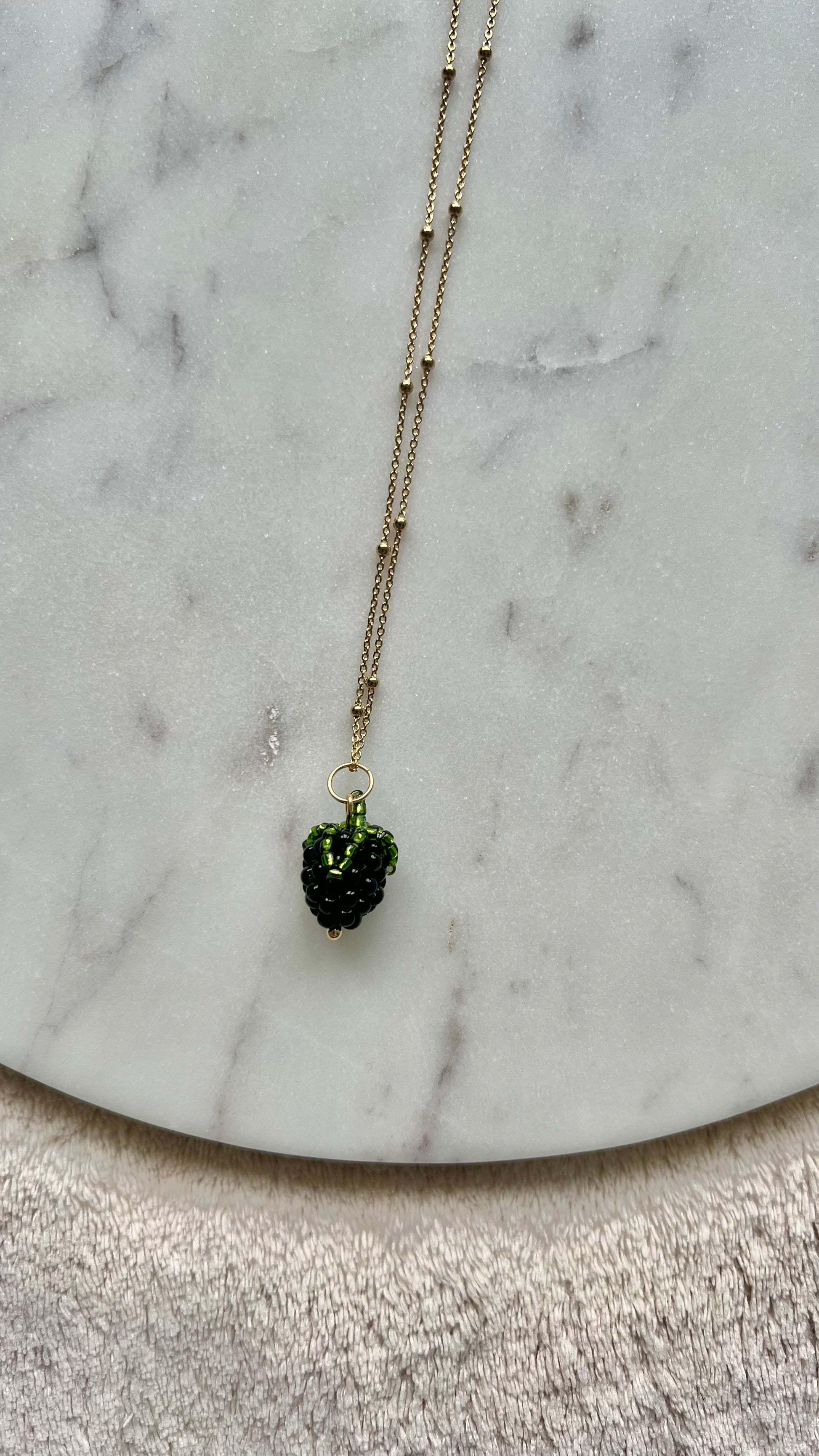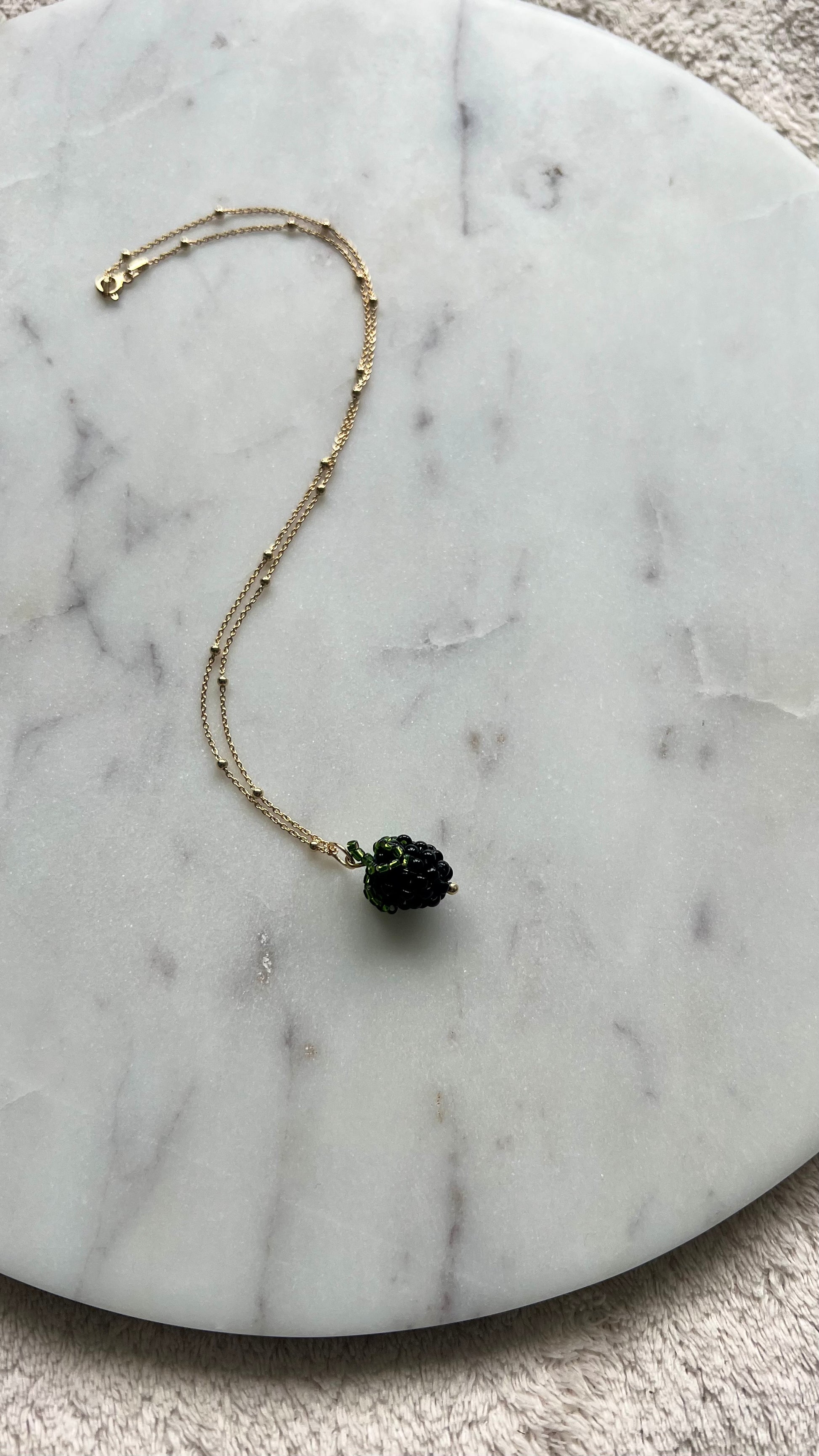 Minimalistyczny, delikatny naszyjnik z uroczą jeżyną uszytą ręcznie z japońskich koralików Miyuki to idealny dodatek dla wszystkich fanek letnich owoców, retro klimatu i wyjątkowej biżuterii.