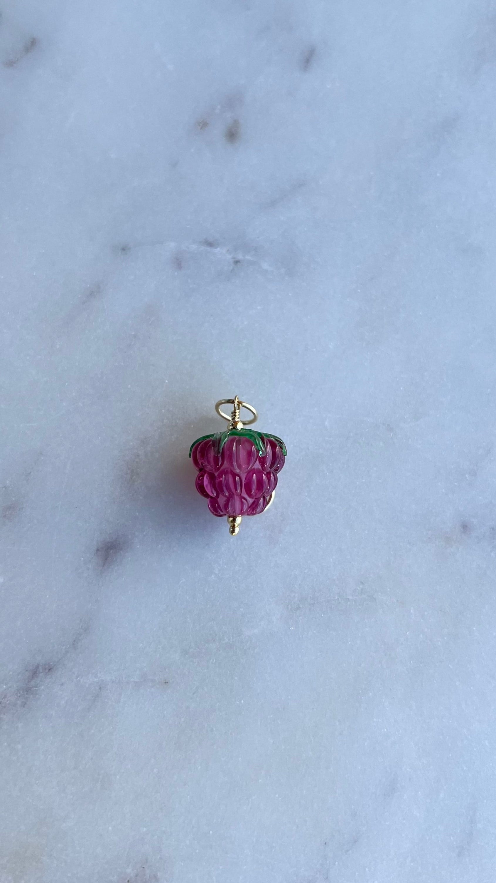 Ręcznie wykonana zawieszka w kształcie malinowego owocu (wysokość owocu ~13mm)