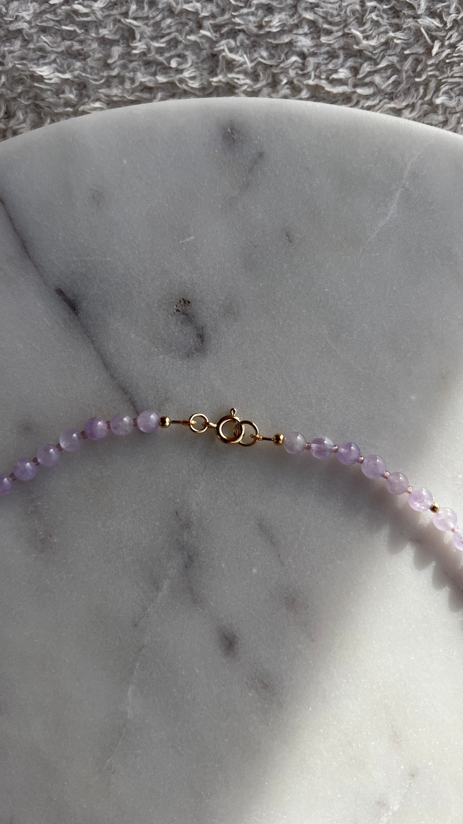 ✿ Naszyjnik z ametystem lawendowym z maliną